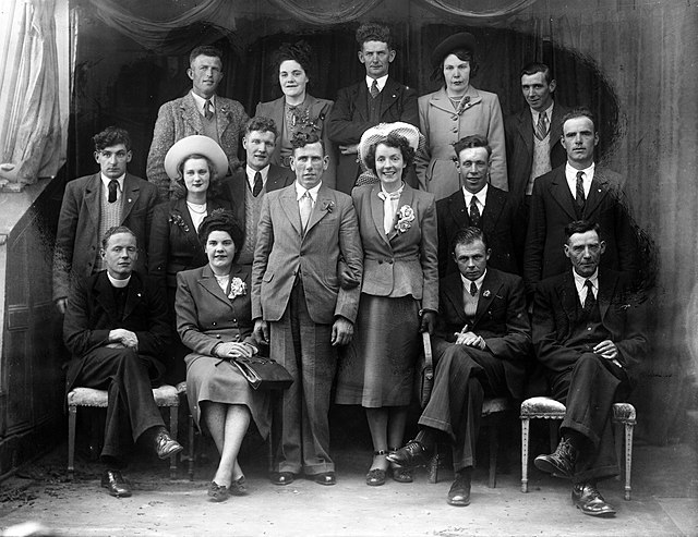 Flowers are in short supply at this wedding which is one factor which helps date the event to the 1940s, a period of austerity either during or just after World War II, The Doyle Wedding, Co. Kilkenny, Via Wikimedia Commons