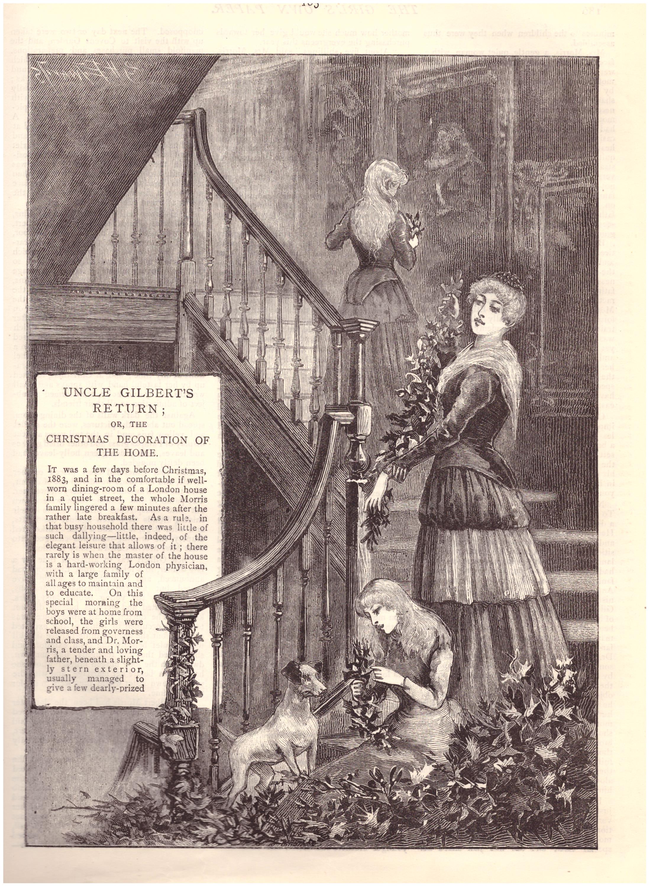 Yew, box and fir were all used to decorate the house at Christmas as  well as the more obvious holly, mistletoe and ivy. The Girl’s Own Paper, December 8th, 1888, Vol X, No.467