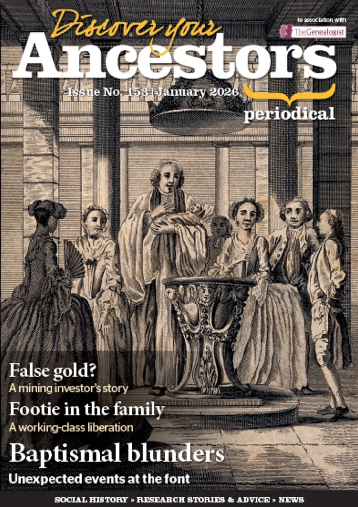 My latest article ‘Baptismal Blunders’ on strange things that happened at christenings in the past is out today in January 2026’s edition of Discover Your Ancestors online magazine.